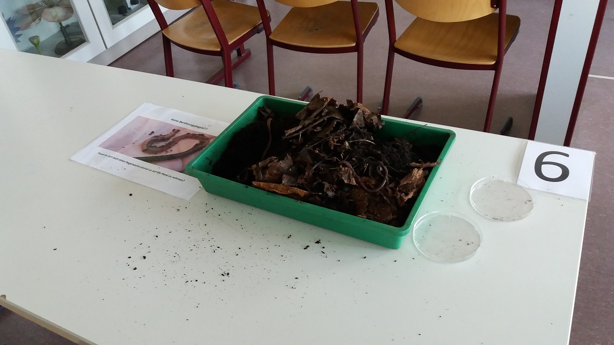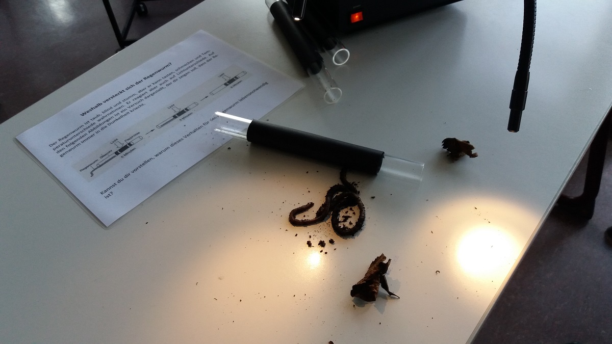 Im Biologieraum gab es an der Regenwurm-Station das verhalten der Regenwürmer zu beobachten: